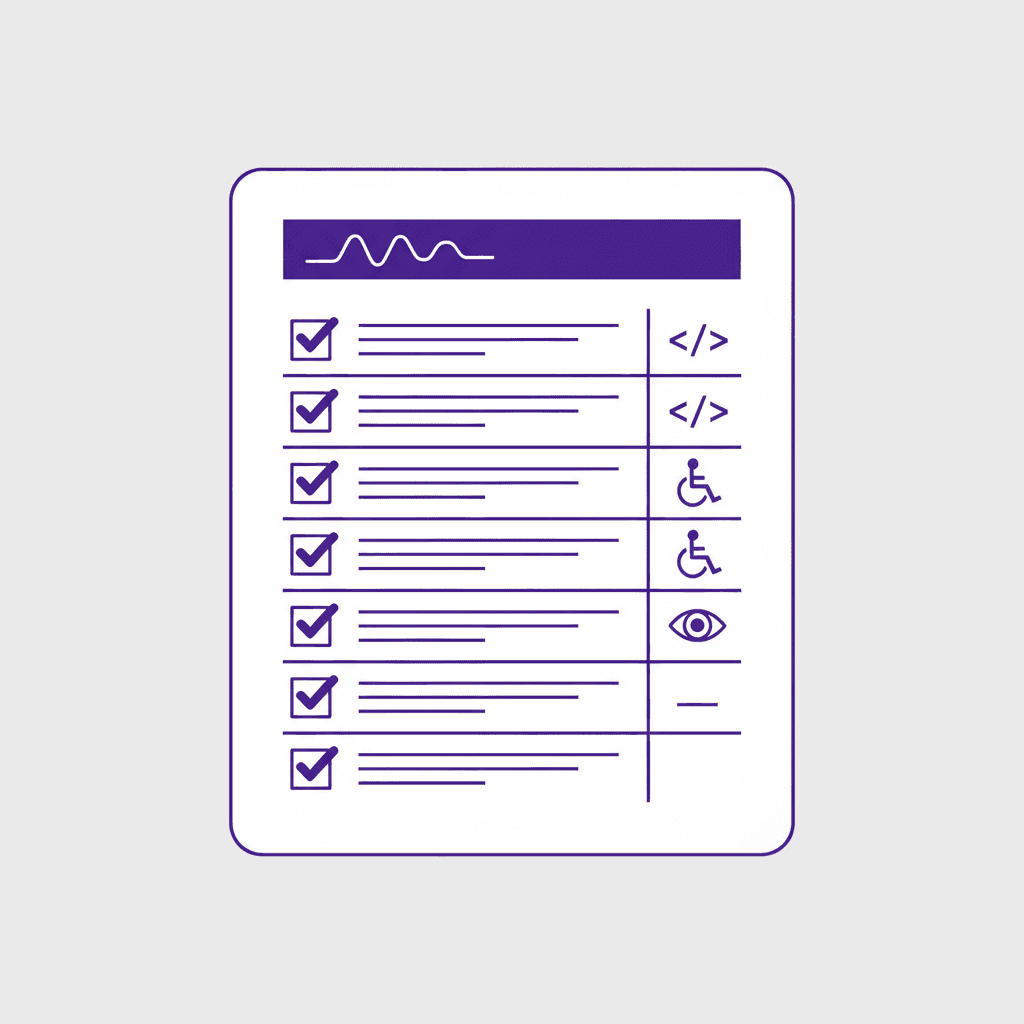 A complete accessibility assessment with actionable insights. Audit report in HTML, PDF, and CSV formats. Assessment against all 55 WCAG 2.2 AA criteria. Priority roadmap with severity ratings. Developer instructions for each issue. Executive summary for leadership. Free re-examination within 12 weeks.